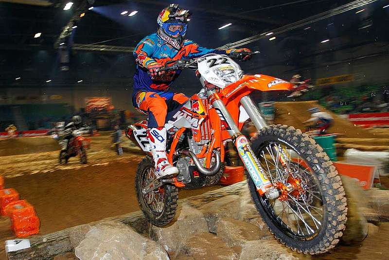 Red Bull KTM’s Taddy Blazusiak was in solid form on Saturday to take his second overall win in the FIM SuperEnduro series in Rd. 2 at Riesa, Germany. The Polish rider led in a three-way KTM podium sweep with David Knight in second and KTM factory rider Jonny Walker of Britain in third.