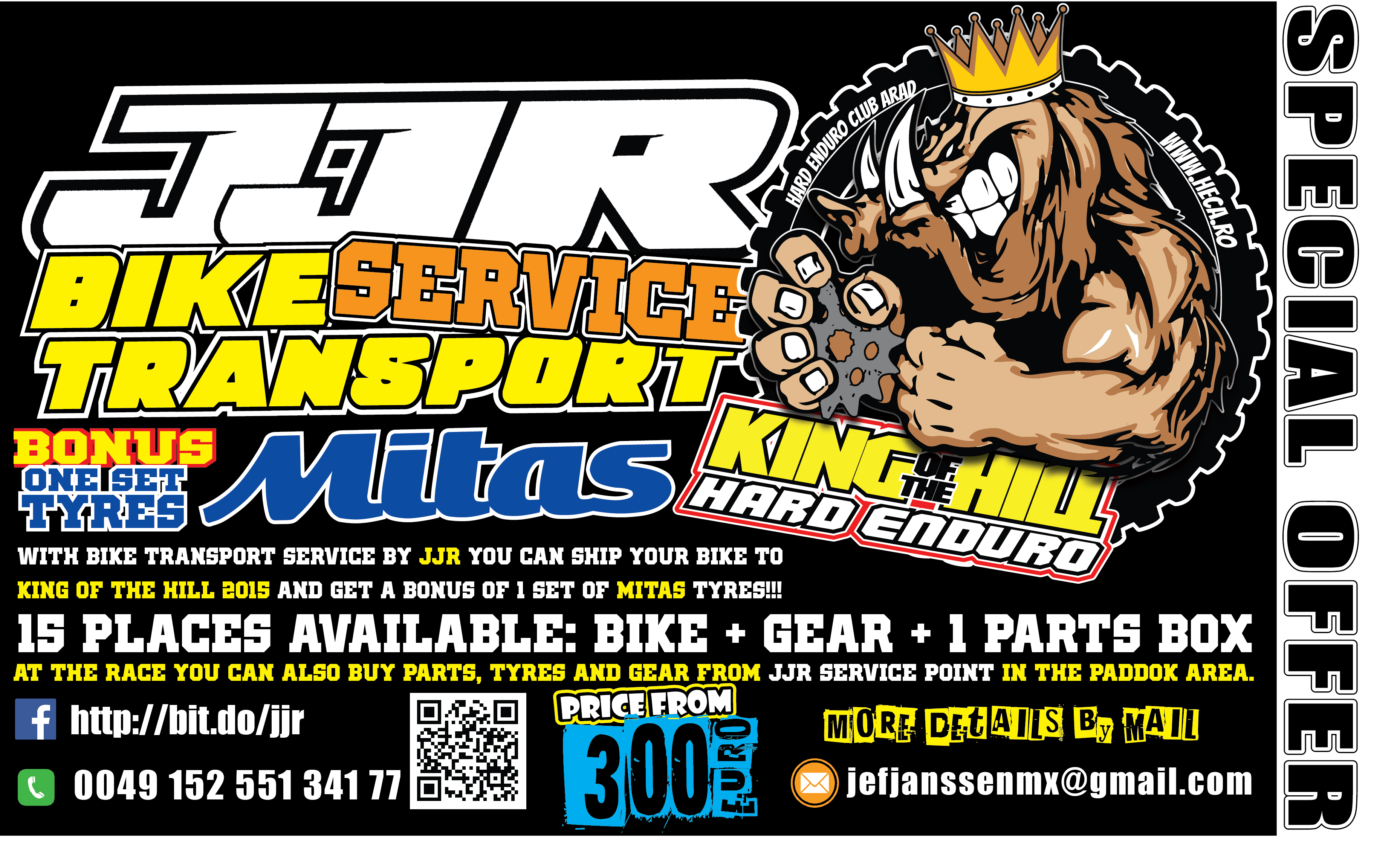 Bring your bike to King of the Hill Hard Enduro 2015 with Jef Janssen Racing and you will get one set of Mitas Tyres.