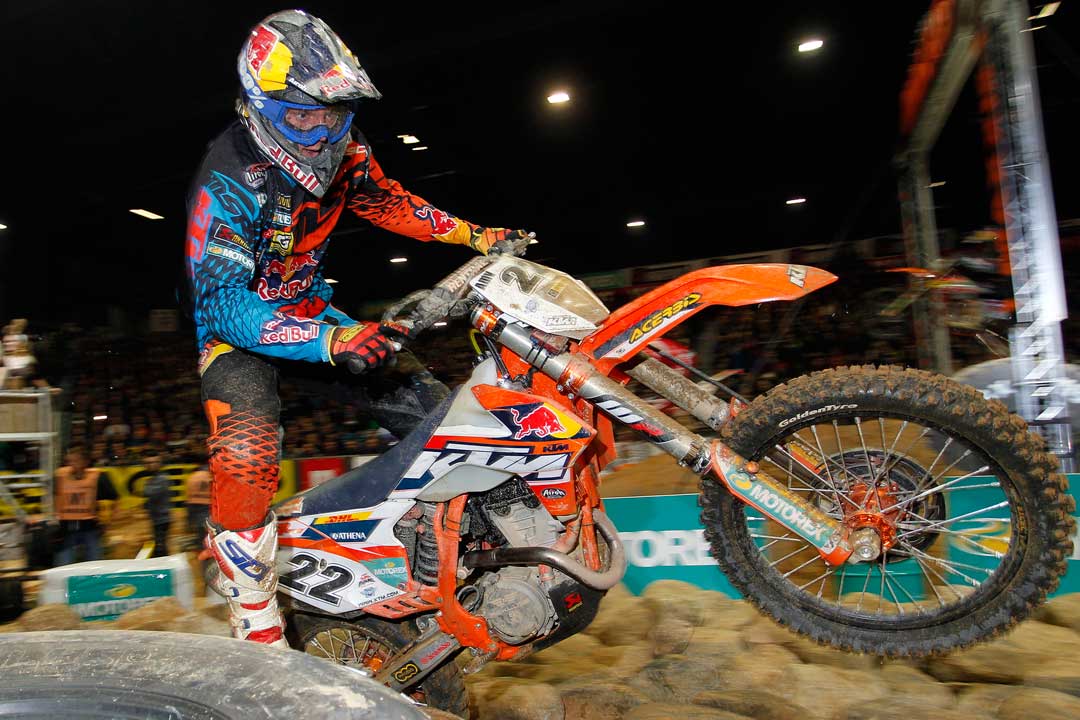 Jonny Walker has finished third overall at the second round of the FIM SuperEnduro World Championship held in Riesa, Germany. Marking the re-start of the SuperEnduro series following the Christmas and New Year break, Walker took the win in the third Prestige final to ensure a hugely positive start to 2015.
